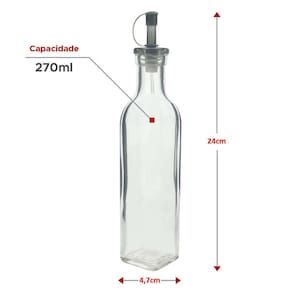 - Possui bico dosador para controlar a saída de azeite ou vinagre do recipiente;