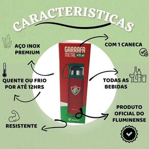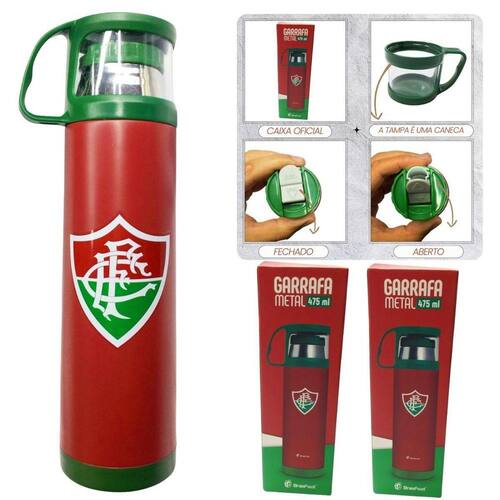 Kit 2 garrafas térmica inox 475ml com 2 canecas g quente frio agúa café time fluminense oficial Detalhes Nada melhor do que poder apreciar aquela bebida quentinha com toda a praticidade, higiene e em qualquer lugar, não é mesmo Então você precisa da garrafa térmica com caneca. Produzida em aço inox, seu revestimento mantém a bebida quentinha por muito mais tempo e suas estampas divertidas tornam a hora do café ainda mais divertida. Também dá pra presentear aquele amigo ou amiga com esse super presente. Características: