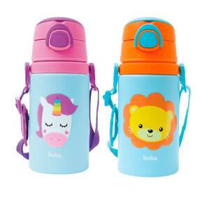 Kit 2 garrafinhas de alumínio antivazamento infantil bebe suco água com canudo retrátil silicone animal fun Cor: unicórnio/leão A garrafinha animal fun girafa da buba e ideal para qualquer hora pode ser utilizada para armazenar agua, sucos e chás. Produzida em alumínio, e resistente e higiênica. Possui canudo em silicone, tampa com trava de segurança e cordinha antiqueda. Perfeita para levar em passeios e viagens.