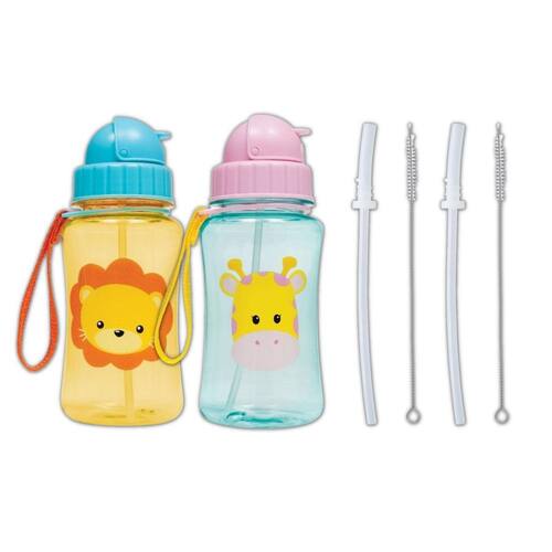 Kit 2 garrafinhas infantil 400 ml buba com 2 canudos extra reposição retrátil silicone Cor: leão - girafa Com capacidade de 400 ml, essa garrafinha vem com um canudo retrátil em silicone, que facilita a transição da garrafinha para o copo. E não se preocupe se seu filho for mais agitado, pois ela tem uma alça que facilita o transporte.
