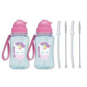 Kit 2 garrafinhas infantil 400 ml buba com 2 canudos extra reposição retrátil silicone Cor: unicórnio Com capacidade de 400 ml, essa garrafinha vem com um canudo retrátil em silicone, que facilita a transição da garrafinha para o copo. E não se preocupe se seu filho for mais agitado, pois ela tem uma alça que facilita o transporte.
