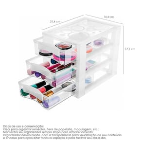 Por que devo adquirir esse gaveteiro Com todas as qualidades que você merece e preço que cabe no seu bolso, foi desenvolvido para armazenar itens como remédio, maquiagens, utensílios de papelaria, confeitaria entre muitas outras opções. Além disso, permite empilhamento para otimizar o espaço no seu ambiente. Transparente, possibilita uma rápida identificação do conteúdo.