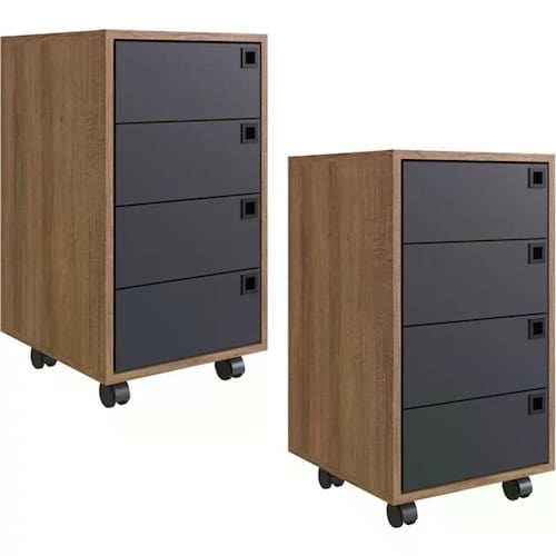 Kit 2 Gaveteiros Para Escritorio 4 Gavetas Of001 Grafite Mel Pp Milani Store Grafite Mel
