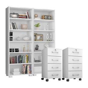 Kit 2 Gaveteiros para Escritório Gávea com Chave e 2 Livreiros Office Branco Fosco Móveis Leão