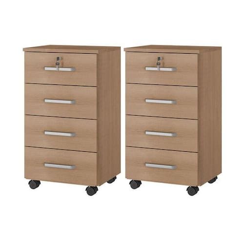 Kit 2 Gaveteiros para Escritório Gávea com Chave Freijó Fosco Móveis Leão