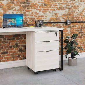 O gaveteiro volante KUGV43 tem um design diferenciado, possui 03 gavetas sendo 01 com chave além dos puxadores de metal e rodízios. Pode ser utilizado em diversas composições com outros móveis, sendo perfeito para fazer parte do seu escritório ou sala. A linha Kuadra tem seu design com inspiração no estilo industrial, que remete muito a decoração usada nos lofts das grandes metrópoles nos anos 60 e 70. Harmonizando o metal e os tons de madeira, foram projetados móveis versáteis e com estilo, que podem compor ambientes flexíveis cheios de personalidade, perfeitos para você decorar sua casa ou seu trabalho, tendo um resultado que caminha do estilo rústico ao moderno. Suas estruturas são fabricadas em aço, com soldas suavizadas e pintura texturizada epóxi-pó, conta com pés niveladores de altu Altura do Conjunto: 70.5 cm Ambiente: null Ambiente Principal: Escritório Cor: Snow/Preto Ônix Informação Complementar: 2x Gaveteiro Volante 2 Gavetas e 1 Gaveta para Pastas Kugv43 Kuadra Snow/Preto Ônix Largura: 45,5 cm Altura: 70,5 cm Peso: 18,48 kg Profundidade: 43 cm Necessita Montagem: Sim