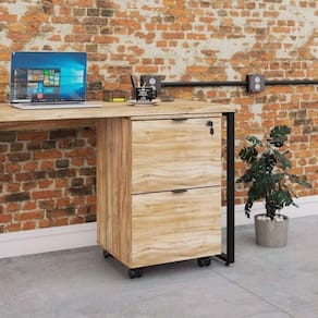 O gaveteiro volante KUGV42 tem um design diferenciado, possui 02 gavetas para pastas sendo 01 com chave, além dos puxadores de metal e rodízios. Pode ser utilizado em diversas composições com outros móveis, sendo perfeito para fazer parte do seu escritório ou sala. A linha Kuadra tem seu design com inspiração no estilo industrial, que remete muito a decoração usada nos lofts das grandes metrópoles nos anos 60 e 70. Harmonizando o metal e os tons de madeira, foram projetados móveis versáteis e com estilo, que podem compor ambientes flexíveis cheios de personalidade, perfeitos para você decorar sua casa ou seu trabalho, tendo um resultado que caminha do estilo rústico ao moderno. Suas estruturas são fabricadas em aço, com soldas suavizadas e pintura texturizada epóxi-pó, conta com pés nivela Altura do Conjunto: 70.5 cm Ambiente: null Ambiente Principal: Escritório Cor: Carvalho/Preto Ônix Informação Complementar: 2x Gaveteiro Volante 2 Gavetas para Pastas Kugv42 Kuadra Carvalho/Preto Ônix Largura: 45,5 cm Altura: 70,5 cm Peso: 17,29 kg Profundidade: 43 cm Necessita Montagem: Sim
