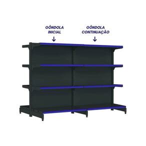Nosso kit com 2 gôndolas de centro na cor preta é ideal para armazenamento e exposição de produtos em supermercados, mercearias, farmácias, lojas de utilidades, materiais de construção, agropecuárias, e muito mais, variando de acordo com a capacidade de peso de cada modelo.com 1,37m de altura, esta gôndola proporciona uma exibição eficiente dos produtos, maximizando o espaço vertical da sua loja e permitindo uma organização prática e acessível.as gôndolas possuem uma capacidade de 40kg por bandeja. com pintura eletrostática epóxi, antibacteriana, uniforme e resistente.possui bandejas com inclinação em 3 posições e bandejas reguláveis na coluna a cada 25mm, o que permite adição de bandejas extras. a bandeja é construida em chapa 26 (espessura de 0,50mm). fundo da bandeja quadrado para melhor exposição.pés com regulagem de altura, colunas dupladas e tratamento especial da superfície.a gôndola é prática e fácil de montar, com sistema de encaixe sem utilização de parafusos. você pode instalar suas gôndolas rapidamente, sem complicações, permitindo que você comece a exibir seus produtos em pouco tempo.todas as nossas gôndolas possuem qualidade, resistência e durabilidade garantidas pelo uso de matérias-primas de alto padrão, processos produtivos com a mais atual tecnologia e um cuidado especial em cada etapa.modernas e elegantes, nossas gôndolas são projetadas para destacar seus produtos e criar um ambiente agradável de compras para seus clientes, incentivando a exploração e aumentando as vendas.aproveite ao máximo cada centímetro disponível em sua loja com nossas gôndolas projetadas para maximizar o espaço de exposição, permitindo uma ampla variedade de produtos em um layout eficiente.- capacidade de 40kg por bandeja;- colunas dupladas: com sistema de encaixe, sem utilização de parafusos;- tecnologia exclusiva de apoio sgl;- pés reforçados e com regulagem;- bandejas inclináveis: oferece 3 opções para melhor exposição;- bandejas reguláveis a cada 25mm: possibilidade de adicionar bandejas extras;- reforço na base e bandeja: para maior capacidade de carga e estabilidade;- bandeja é construida em chapa 26;- ponteira da coluna: maior proteção e durabilidade.*porta etiquetas: vendidos separadamente, em variadas opções de cores.> o kit contém- 01x gôndola new premium 1,37m preta centro inicial- 01x gôndola new premium 1,37m preta centro continuação> especificaçõesgôndola centro inicialmodelo: gôndola de centro iniciallinha: fit 40altura: 1,37mcor: pretaquantidade de bandeja: 8 (4 em cada lado)peso suportado por bandeja: 40kgchapa: 26gôndola centro continuaçãomodelo: gôndola de centro continuaçãolinha: fit 40altura: 1,37mcor: pretaquantidade de bandeja: 8 (4 em cada lado)peso suportado por bandeja: 40kgchapa: 26> medidas do produtogôndola centro inicialaltura: 1,37mlargura: 0,96mpeso: 28kglargura da bandeja: 0,90mprofundidade da bandeja base: 0,40mprofundidade das bandejas superiores: 0,30mgôndola centro continuaçãoaltura: 1,37mlargura: 0,93mpeso: 23kglargura da bandeja: 0,90mprofundidade da bandeja base: 0,40mprofundidade das bandejas superiores: 0,30m> garantia- 6 meses> troca e devoluçãomediante termos da política de trocas e devoluções da empresa.