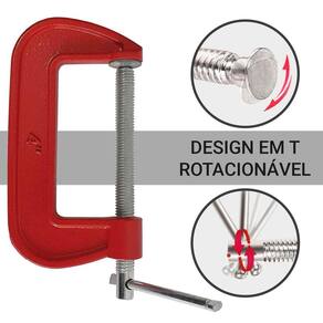 Grampo Sargento 4 Pol. 100mm Tipo C. Corpo em ferro fundido, Fuso em aço especial. Utilizado em marcenarias para firmar ou prender peças que necessitem ser trabalhadas ou coladas.