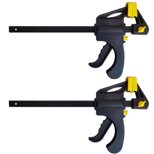 O Kit 2 Grampos Sargento 200mm de Aperto Rápido Profissional é a ferramenta essencial para profissionais como marceneiros, carpinteiros, pedreiros e outros que trabalham com marcenaria, colagem, fixação de peças, montagem de móveis, entre outros.