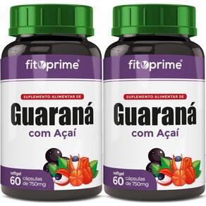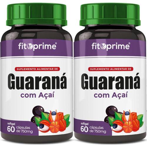 Kit 2 potes de guaraná com açaí 750mg com 60 cápsulas fitoprimeIngredientes:Guaraná em pó, açaí desidratado em pó, óleo de soja e emulsificante lecitina de soja. Composição da cápsula: gelatina, água purificada, umectante glicerina e corantes vermelho azorrubina, vermelho 40 e azul patente v. Não contém glúten. Alérgicos: contém derivados de soja.Apresentação:Frasco com 60 cápsulas de 750mg.Sugestão de uso:Ingerir 4 cápsulas ao dia.Conservação:Após aberto, manter a embalagem bem fechada e armazenar em local fresco, seco e ao abrigo de luz.Produto lacrado para sua proteção. Não utilizar em caso de violação. Manter fora do alcance de crianças. produto dispensado de registro conforme rdc 240/2018.