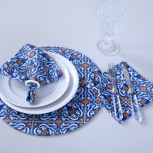 INFORMAÇÕES ESPECÍFICAS: - Estampa exclusiva, design sofisticado que eleva a decoração da mesa de jantar; - Material resistente, produzido em tecido 100% poliéster, garantindo durabilidade e qualidade; - Conjunto funcional, acompanha duas unidades, unindo funcionalidade e estilo; - Praticidade, fácil de lavar e manter, ideal para uso no dia a dia.