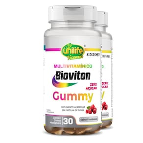 Kit 2 gummy multivitamínico sabor framboesa unilife 30 gomas Gummies - são suplementos em forma de pastilhas de goma, livres de glúten e zero açúcar, com nutrientes diversos que atendem a várias funções no organismo. A goma utilizada é a pectina gelificante e glaceante cera de carnaúba. Os aromas e corantes são naturais e edulcorante isomalte. Multivitamínico - suplemento enriquecido com nutrientes com ação antioxidante, participa do fortalecimento do sistema imune e promove disposição física. Contém boa quantidade de vitaminas e minerais que podem complementar a alimentação de forma equilibrada. Não contém glúten livre de lactose Produto autorizado para comercialização em todo o território nacional através do anexo i da rdc 240/2018 da anvisa. Afe do ms 6.02234-1. Marca: Não Informado