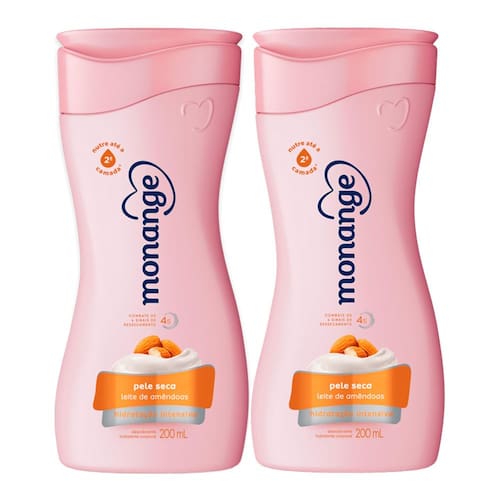 LOÇÃO MONANGE LEITE DE AMÊNDOAS PARA PELE SECA O Hidratante Monange Hidratação Intensiva Pele Seca oferece hidratação para peles secas, ajudando a devolver a umidade, deixando a pele protegida e macia. Dermatologicamente testado. Hipoalergênico. Nutriskin: Hidrata e nutre até a 2ª camada da pele. 24h de Hidratação.