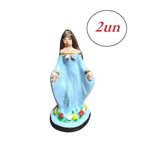 Iemanjá Imagem Yemanjá 10 cm x 4,5cm Pintada a mão com acabamento de alta qualidade. Material: Imagem em Gesso Cor: Azul e branco com detalhes coloridos Dimensões aproximadas do produto.