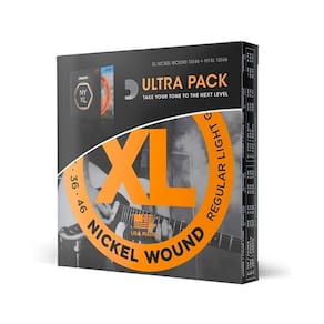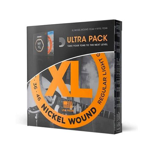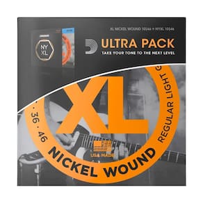 Kit 2 jogo de cordas d'addario 010 exl110 nyxl1046 - ultra pack exl110 + nyxl1046x000d - modelo exl110-3d 010-046 x000d x000d - nickel/ round woundx000d -tipo: encordoamento para guitarra - tensao 010x000d - e: 0.010x000d - b: 0.013x000d - g: 0.017x000d - d: 0.026x000d - a: 0.036x000d - e: 0.046x000d x000d Atrás de cada conjunto de cordas d'addario há mais de três séculos de excelente habilidade. A tradição da família d'addario começou na pequena cidade de salle, na itália, em 1680, onde fizeram vários instrumentos por mais de duzentos anos antes de se mudarem para nova york em 1905. À medida que a moderna indústria de fabricação de cordéis começou a se desenvolver, o d'addario a família emergiu como inovadora ao projetar a máquina de bobinamento que a maioria dos fabricantes de cordas ainda usa atualmente. E enquanto suas técnicas se modernizaram, o orgulho que entra em cada conjunto de cordas remonta às raízes mais antigas da família d'addario.x000d x000d Apresentando as nyxl - a nova geração de cordas para guitarra. Volume intenso e resistência sem precedentes. Mantém a afinação por mais tempo do que qualquer outra corda que você já tocou. Novo e exclusivo núcleo de aço de alto carbono proporciona um novo patamar de liberdade, confiança e força. As nyxl são mais fortes, resistentes e oferecem 131% a mais de estabilidade de afinação pois utilizam um novo e exclusivo processo de trefilagem, associada ao revolucionário fusion twist, sistema de torção das cordas lisas.Totalmente reformulado, o enrolamento das cordas banhadas a níquel tem propriedades magnéticas de maior amplitude, resultando em uma projeção sonora mais intensa e mais ganho nas frequências médias, para mais presença, volume e punch.x000d x000d - modelo: nyxl 1046x000d - tipo: encordoamento para guitarrax000d - material: níquelx000d - quantidade de cordas: 6x000d - espessura: 0,10 Marca: Não Informado