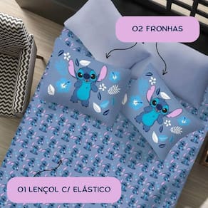 Kit 2 Jogos Cama Stitch Casal com Elástico Oficial Disney Olá, amigas os