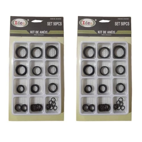 2 Kits de Anéis para Vedação contendo 50 peças cada embalagem de diversos tamanhos. São 12 tamanhos de anéis conforme relacionado abaixo