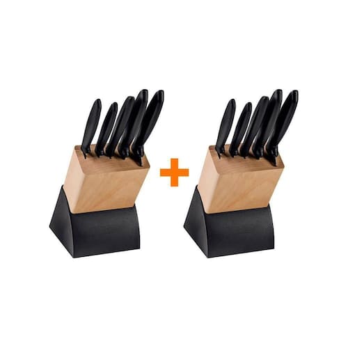2 - Jogo de 6 PÇ (4 facas, 1 garfo e Suporte de Madeira Plenus) - Tramontina 23498028