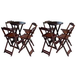 Kit 2 Jogos De Mesa Bistrô De Madeira Com 4 Cadeiras Dobravel Ideal Para Bar E Restaurante Imbuia - Cor: Marrom