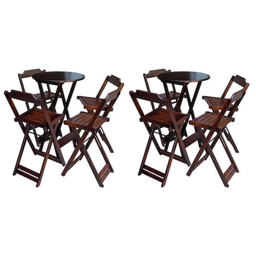 Kit 2 Jogos De Mesa Bistrô De Madeira Com 4 Cadeiras Dobravel Ideal Para Bar E Restaurante Imbuia é ideal para bares, restaurantes, estabelecimentos, áreas de lazer e tambem para sua casa. Feito em madeira maciça, tornando resistentes e duráveis. Seu design permite que seja encaixado em qualquer ambiente, trazendo um toque a mais para seu estabelecimento. Além de sua durabilidade, o que lhe trará conforto para servir seus clientes. Por ser dobrável torna-se mais fácil guardar, manusear e limpar o produto. Atenção: EVITE USAR PRODUTOS ABRASIVOS E QUíMICOS PARA LIMPEZA DO PRODUTO, aconselha-se o uso de pano umedecido para melhor conservação; mantenha o produto fora de chuva e sol constantes. OBS: MDF ULTRA MESA Cor: Imbuia Modelo: Bistrô Dobravel Dimensões: Altura 99cm | Largura 55cm | Profundidade 55cm CADEIRA Cor: Imbuia Modelo: Bistrô Dobravel Dimensões: Altura 100cm | Largura 38cm | Profundidade 37cmKit 2 Jogos de Mesa Bistrà de Madeira com 4 Cadeiras Dobravel Ideal para Bar e Restaurante Imbuia Marca: Preguiçosa