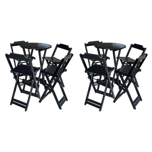 Kit 2 Jogos De Mesa Bistrô De Madeira Com 4 Cadeiras Dobravel Ideal Para Bar E Restaurante Preto - Cor: Preto