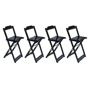 Kit 2 Jogos de Mesa Bistrô Dobrável em Madeira Maciça com 2 Banquetas Altas - Preto - Preto
