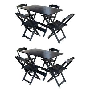 Kit 2 Jogos De Mesa Com 4 Cadeiras De Madeira Dobravel 120x70 Para Bar E Restaurante - Preto - Cor: Preto