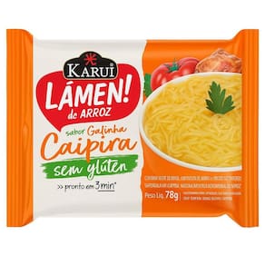 Kit 2 Lámen De Arroz Sem Glúten Karui Galinha Caipira 78g Kit 2 Lámen de Arroz Sem Glúten Karui - Sabor Galinha Caipira 78g O sabor da roça com leveza e praticidade. O Lámen de Arroz Karui sabor Galinha Caipira combina o gostinho caseiro da galinha caipira com a leveza do macarrão à base de arroz, sem glúten. É a escolha perfeita para quem busca uma refeição rápida, saborosa e ideal para dietas com restrição ao glúten.