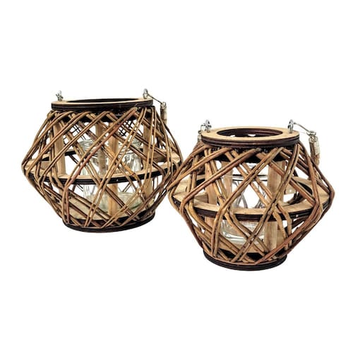 Kit 2 Lanterna Decorativa Lampião Castiçal Madeira Corda