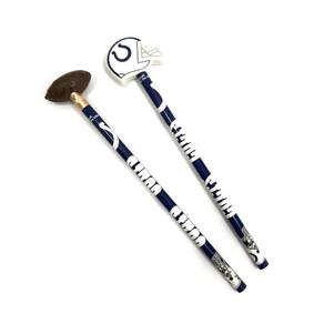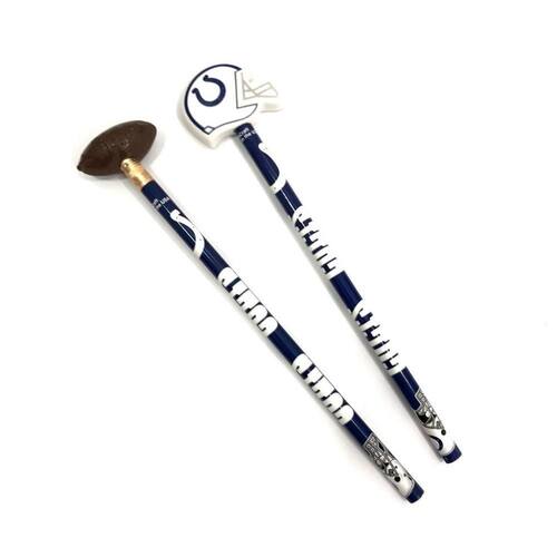 Lápis + Borracha INDIANAPOLIS COLTS - NFL Lápis de madeira oficialmente licenciado de 17cm x 0,6 de diâmetro. Cada lápis possui uma borracha com o logo do imte ou uma bola de futebol americano. Kit Contendo 2 Lápis e 2 Borrachas Lápis com 17cm Marca: WinCraft Time: IndianapolisColts e Licenciado Oficialmente pela NFL Marca: Não Informado