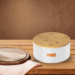 Kit 2 lata hermética porta biscoito doce tampa de bambu multiuso ========== sobre o produto ========== A lata hermética porta biscoito doce tampa de bambu multiuso é perfeita para manter seus biscoitos, doces e outros alimentos sempre frescos e organizados. Feita em metal de alta qualidade e com uma tampa de bambu natural com vedação hermética, este porta mantimentos combina elegância e funcionalidade. Ideal para qualquer cozinha, oferece um design moderno e prático que facilita o armazenamento e contribui com a decoração do ambiente. ========== especificações ========== Tampa de bambu multifuncional e resistente. Design compacto e sofisticado, ideal para diversas cozinhas. Material durável e fácil de limpar. Multiuso: pode ser para biscoitos, doces, grãos ou outros alimentos. ========== ficha técnica ========== Cor: branco Unidades: 2 Medidas: 21 x 9cm Material: metal / bambu Marca: paramount : 3 meses Estamos online para quaisquer dúvidas, Agradecemos e aguardamos o seu pedido. P: a tampa realmente veda bem R: sim, a tampa possui uma vedação que mantém os alimentos frescos por mais tempo. P: o produto é resistente a quedas R: a lata é feita de metal durável, mas deve ser manuseada com cuidado para evitar danos. P: posso armazenar alimentos diferentes além de biscoitos R: sim, a lata é multiuso e pode ser Utilizado para armazenar doces, grãos, cereais ou outros alimentos secos. P: o produto é novo ou Marca: Não Informado