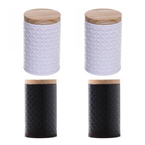 Características: Cor: Branco ou Preto Material: Metal Largura: 10cm Comprimento: 10cm Altura: 19,5cm Tampa: Material da tampa é metal que imita bambu, para que a vedação seja mais eficiente.
