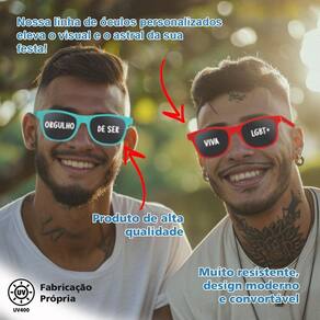 Nossos óculos são de fabricação própria, confeccionados com materiais seguros e de bom acabamento. Todos com certificação UV400 contra os efeitos nocivos dos raios solares.