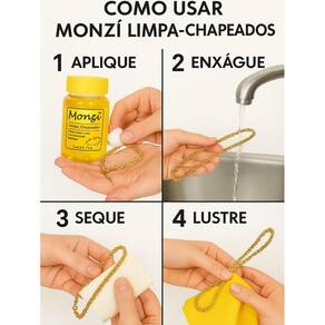 Kit 2 Limpa Chapeados Semijóia Monzi 125Ml Grande Liquido Restaura Limpeza Jóias Anel Descrição do produto: O limpa chapeados monzi é um produto específico para limpar semijóias e fácil de usar. Atenção para o modo de usar Modo de usar: - passe o limpa chapeados monzi na semijóias banhada folheada ou cobre utilizando algodão. - enxágue em água corrente e enxugue bem com uma flanela mágica. Descarte o algodão. - para objetos maiores, utilize um recipiente de vidro ou plástico com imersão da peça por 10 segundos apenas. - lave bem o recipiente utilizado. - descarte o produto em água corrente. - não risca e nem desgasta a prataria. - limpa chapeados monzi retira a oxidação e a gordura, deixando ainda, uma camada de proteção no objeto. Marca: Não Informado