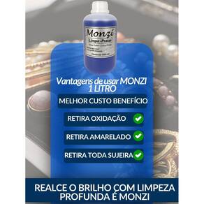 Kit 2 Limpa Prata 925 Monzi 1 Litro Grande 1000Ml Limpeza Jóia Brilho Descrição do produto: O limpa prata monzi é um produto específico para limpar joias de prata e fácil de usar. Atenção para o modo de usar Modo de usar: - passe o limpa pratas monzi no objeto de prata ou cobre utilizando algodão. - enxágue em água corrente e enxugue bem com uma flanela mágica. Descarte o algodão. - para objetos maiores, utilize um recipiente de vidro ou plástico com imersão da peça por 10 segundos apenas. - lave bem o recipiente utilizado. - descarte o produto em água corrente. - não risca e nem desgasta a prataria. - limpa pratas monzi retira a oxidação e a gordura, deixando ainda, uma camada de proteção no objeto. Marca: Não Informado