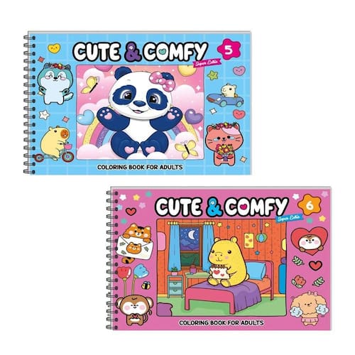 O que acompanha o Kit:- 1 Livro Cute & Comfy Super Extra Edição 5 AzulUm convite ao relaxamento, com ilustrações acolhedoras que combinam perfeitamente com o tom elegante da capa azul holográfica.- 1 Livro Cute & Comfy Super Extra Edição 6 RosaDelicado e inspirador, traz uma seleção de desenhos reconfortantes, perfeitos para expressar sua criatividade com leveza e estilo.