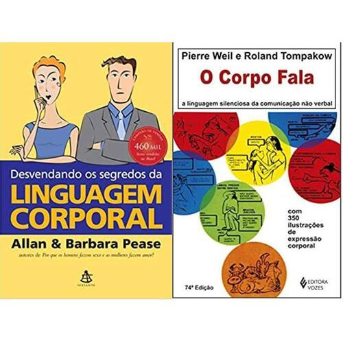 KIT 2 LIVROS Desvendando os segredos da linguagem corporal + Corpo fala KIT 2 LIVROS Desvendando os segredos da linguagem corporal + Corpo fala Desvendando os segredos da linguagem corporal Capa comum Edição Português por Allan Pease Autor , Barbara Pease Autor , Pedro Jorgensen Junior Tradutor Editora : Editora Sextante; 1 edição 3 agosto 2005 Idioma : Português Capa comum : 271 páginas ISBN-10 : 8575421824 ISBN-13 : 978-8575421826 Dimensões : 20.8 x 13.8 x 1.8 cm Um gesto vale mais do que mil palavras. Provavelmente você já ouviu esta frase, mas talvez não tenha se dado conta do quanto ela é verdadeira. Em Desvendando os segredos da linguagem corporal Allan e Barbara Pease esclarecem que 93% da comunicação humana é feita através de expressões faciais e movimentos do corpo.