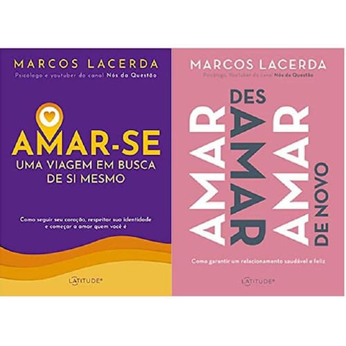 Kit 2 livros marcos lacerda amar-se: uma viagem em busca de si mesmo + amar, desamar, amar de novo Amar-se: uma viagem em busca de si mesmo capa comum - 1 junho 2021Edição português por marcos lacerda autor Uma viagem toda sua que delícia é viajar fazer os preparativos, escolher o roteiro, procurar informações sobre os melhores lugares para se hospedar, os pontos turísticos... Mas, e quando a viagem tem como destino você mesmo Como fazer as reservas, preparar as malas e cair na estrada Pois é nesse tour que vamos embarcar. E de primeira classe quero que você se acomode da forma mais confortável em seu assento para percorrer esse caminho em direção a sua autoestima. E, assim, entender que cada pessoa se constrói por meio de convivências, situações, amores e de toda sua história de vida. Porém, é necessário deixar para trás crenças e comportamentos impostos pelos outros que apagam sua essência e limitam quem você é. Amar-se: uma viagem em busca de si mesmo traz um percurso em direção ao seu universo particular.Detalhes do produtoEditora : latitude; 1 edição 1 junho 2021 Idioma : portuguêsCapa comum : 180 páginasIsbn-10 : 6589275076Isbn-13 : 978-6589275077Dimensões : 22.8 x 15.8 x 1.4 cmAno de publicação: 2021Amar, desamar, amar de novo: como garantir um relacionamento saudável e feliz capa comum - edição padrão, 22 novembro 2019Edição português por marcos lacerda autor Amar, des amar, amar de novo . Essa é a sua história, a minha, a de todos nós. Não há quem já não tenha sofrido a alegria de ter, a dor de perder e a dureza de recomeçar. O amor é essa montanha-russa de sensações que nos anima, assusta e nos torna tão humanos. Neste livro, você vai começar uma viagem através de tudo o que se conjuga junto ao verbo amar, e entenderá por que esse sentimento nunca vem e permanece tão facilmente quanto a gente gostaria. Então, já que amar não sai de graça, que tal descobrir como garantir um relacionamento mais saudável e feliz É hora de você se conhecer melhor. Afinal, quando sabemos qual o nosso lugar dentro de nós mesmos, a nossa capacidade de amar se amplia, a gente se empodera e descobre que somos muito mais capazes de refazer o nosso mundo amoroso e nossas relações. Detalhes do produtoEditora : latitude; 1 edição 22 novembro 2019 Idioma : portuguêsCapa comum : 180 páginasIsbn-10 : 8550702943Isbn-13 : 978-8550702940Idade de leitura : 16 anos e acimaDimensões : 22.86 x 15.24 x 1.27 cmAno de publicação: 2019Autor: Marcos LacerdaCondição do Item: NovoTipo de Narração: ManualTipo de Capa: ComumFormato: Papel