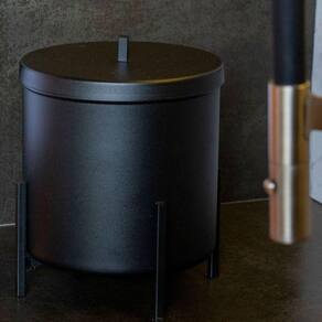 Higiene Sem Esforço: O cesto em alumínio se encaixa perfeitamente, evitando contato com o chão e facilitando a limpeza, enquanto a pintura eletrostática em Preto fosco proporciona resistência à umidade.