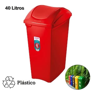 01 - Lixeira 40L Seletiva Vermelha Para Plástico