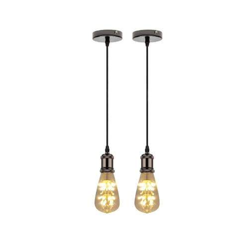 Kit 2 luminária pendente soquete bocal e27 com lâmpada led vintage luz amarela formato pêra cor: preto com cinza kit 2 pendentes retro fio vintage com duas lâmpadas formato pera