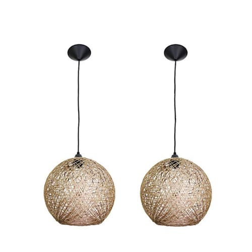 Kit com 2 luminárias rústicas de teto artesanal fibra natural 18 cm