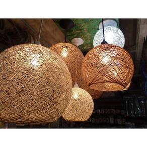 Luminária artesanal rústica de sisal ou juta ou algodão em formato de globo/bola, lavável.