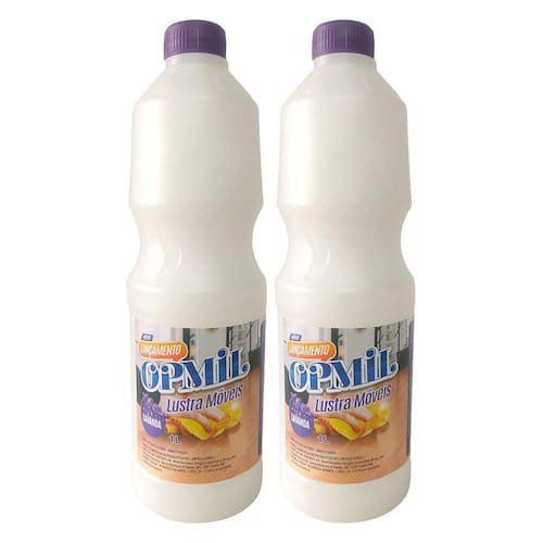 Kit 2 lustra móveis opmil lavanda 1 litro cada Kit com: 2 lustra móveis opmil lavanda 1l cada O lustra móveis opmil é formulado a base de cera de carnaúba e silicone que o que garante um brilho intenso onde é aplicado, pois ele forma sobre as superfícies uma fina película que ajuda a proteger contra manchas de água, diminuindo a aderência de poeiras. Além de móveis tradicionais, móveis rústicos, janelas etc, ele, também, pode ser utilizado em geladeiras, esmaltados e azulejos. O lustra móveis opmil garante aos móveis ótimo acabamento, dá um melhor tratamento, limpeza e brilho, sem engordurar. É um ótimo custo benefício. Modo de usar: - agite bem antes de usar, pois ele é mais concentrado que lustra móveis comum, fazendo ele render muito mais. Aplique com uma flanela limpa e seca e em seguida lustre para realçar e dar brilho. Atenção: não utilize o produto em pisos e escadas. Produto saneante notificado na anvisa n 25351518935202041 Validade: 24 meses 2 anos a partir da data de fabricação Marca: Opmil