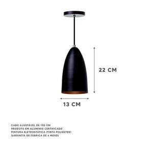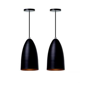 Kit 2 Lustre Pendente Bala M Preto Alumínio Decoração - pendente modelo bala - dimensões: 22x13cm - canopla redonda de 11cm de diâmetro - produto feito em alumínio - 150cm de fio - pronto para instalação - utilize a lâmpada que desejar - soquete e-27 - garantia de 6 meses contra defeitos de fabricação - lâmpadas não inclusas neste produto.