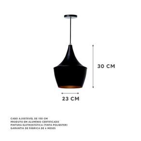 Especificações Técnicas: Marca: Ideallume Modelo: Balão Fixação: Teto Tipo de uso: Interno Pintura: Eletrostática - Tinta: microtextura poliéster Cor: Preto Com Cobre Material : Alumínio Voltagem Do Pendente: Bivolt 110/220v Soquete: E27 Medidas (L x A x D): 23 x 30 x 23 cm Lâmpada: Utiliza 1 lâmpada (Não inclusa)