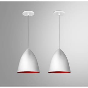 Kit 2 Lustres Pendentes Estilo Vegas Vintage Branco com Vermelho Kit 2 Pendentes Vegas Branco/Vermelho RRJV NEGOCIOS Lustre Pendente Modelo: Vegas Cor: Branco Com Interior Vermelho Medidas Aproximadas: Altura: 18 cm Diâmetro: 15 cm Canópla de teto: 12 cm Soquete e-27 plástico Material: alumínio Marca R.R.J.V Negócios O pendente acompanha 1 Um Metro de fio com altura ajustável. Marca: Rrjv Negocios Ean: 7898736880262