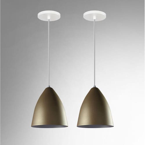 Kit 2 Lustres Pendentes Estilo Vegas Vintage Dourado com Branco Kit 2 Pendentes Vegas Dourado/Branco RRJV NEGOCIOS Lustre Pendente Modelo: Vegas Cor: Dourado Com Interior Branco Medidas Aproximadas: Altura: 18 cm Diâmetro: 15 cm Canópla de teto: 12 cm Soquete e-27 plástico Material: alumínio Marca R.R.J.V Negócios O pendente acompanha 1 Um Metro de fio com altura ajustável. Marca: Rrjv Negocios
