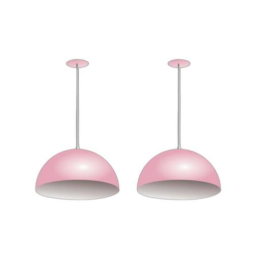Kit 2 lustres pendentes meia lua orby 40cm rosa com branco rrjv Anuncio referente a 2 unidades Lustre pendente Modelo: meia lua Cor: rosa com interior branco Aproxima medidasdas: Altura: 15 cm Diâmetro: 40 cm Canópla de teto: 12 cm Soquete e-27 plástico Material: alumínio Marca r.R.J.V negócios O pendente acompanha 1 um metrô de fio com altura ajustável. Marca: Não Informado
